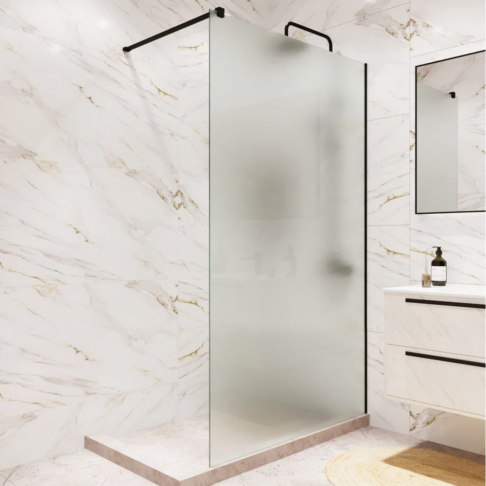 Стационарное стеклянное душевое ограждение. Закаленное матовое стекло толщиной 8 мм.Профиль из анодированного алюминия, окрашенный по технологии матового напыления. Защитное покрытие EasyClean помогает поддерживать поверхность стекла в чистоте, чтобы капли воды не оставались на поверхности.Конструкция перегородки выполнена из анодированного жаропрочного алюминия. Снаружи профиль покрыт оксидным слоем, предотвращающим возникновение коррозии. Исключительная устойчивость к царапинам, отсутствие риска выцветания или запыления.