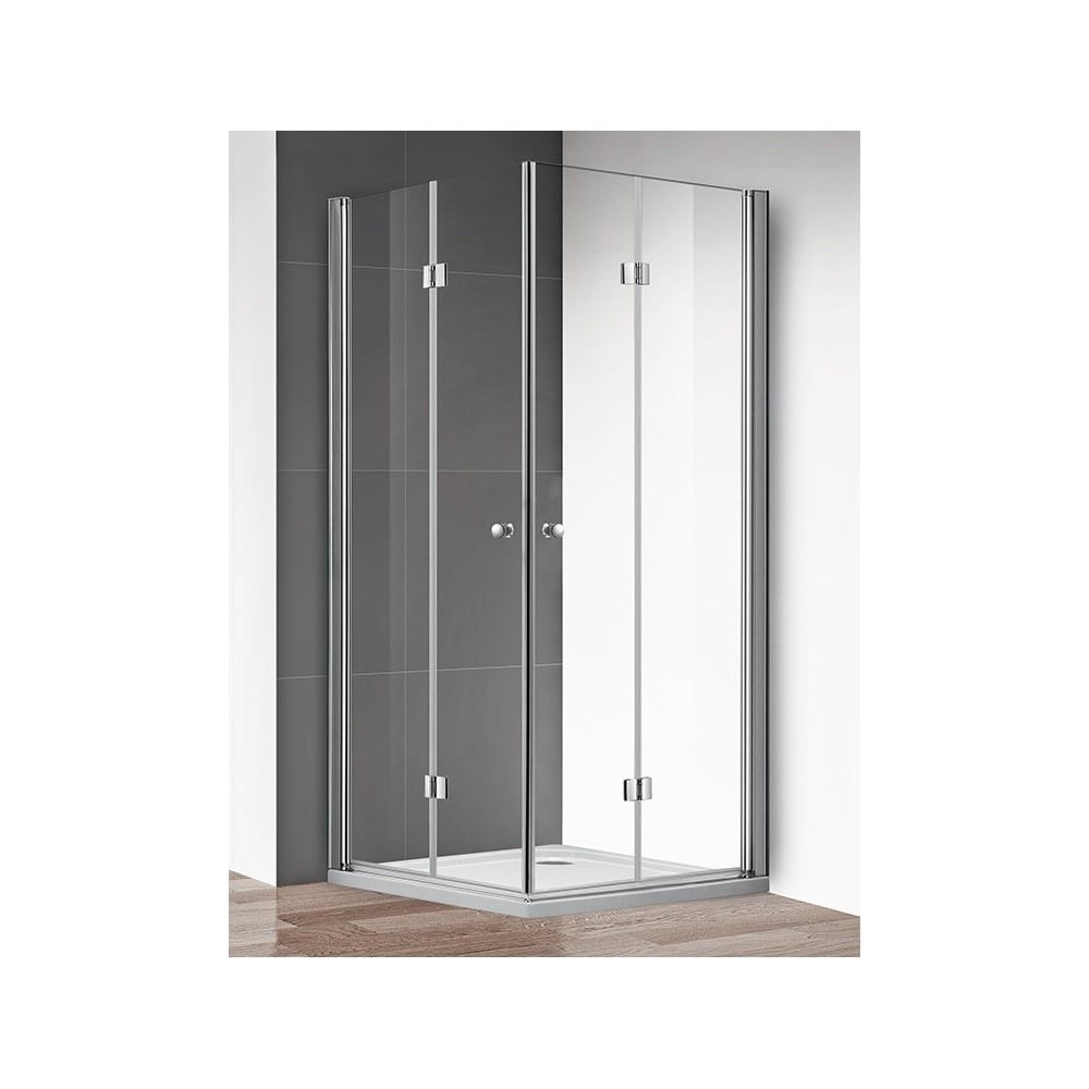 Душевой уголок серии ECO изготовлен по стандарту EN12150-1:2000 из закаленного и травмобезопасного стекла 6 мм. Конструкция двери: складная. Исполнение полотна двери: прозрачное. Ориентация: универсальная. Количество секций двери: 2. Крепления полотна двери: петли с подъемным механизмом. Высота: 1950 мм. Цвет профиля: хром. Материал профиля: анодированный алюминий, стандарт DIN17611 2007. Регулировка ширины: предусмотрена за счет боковых профилей. Возможная установка: на поддон, на пол.