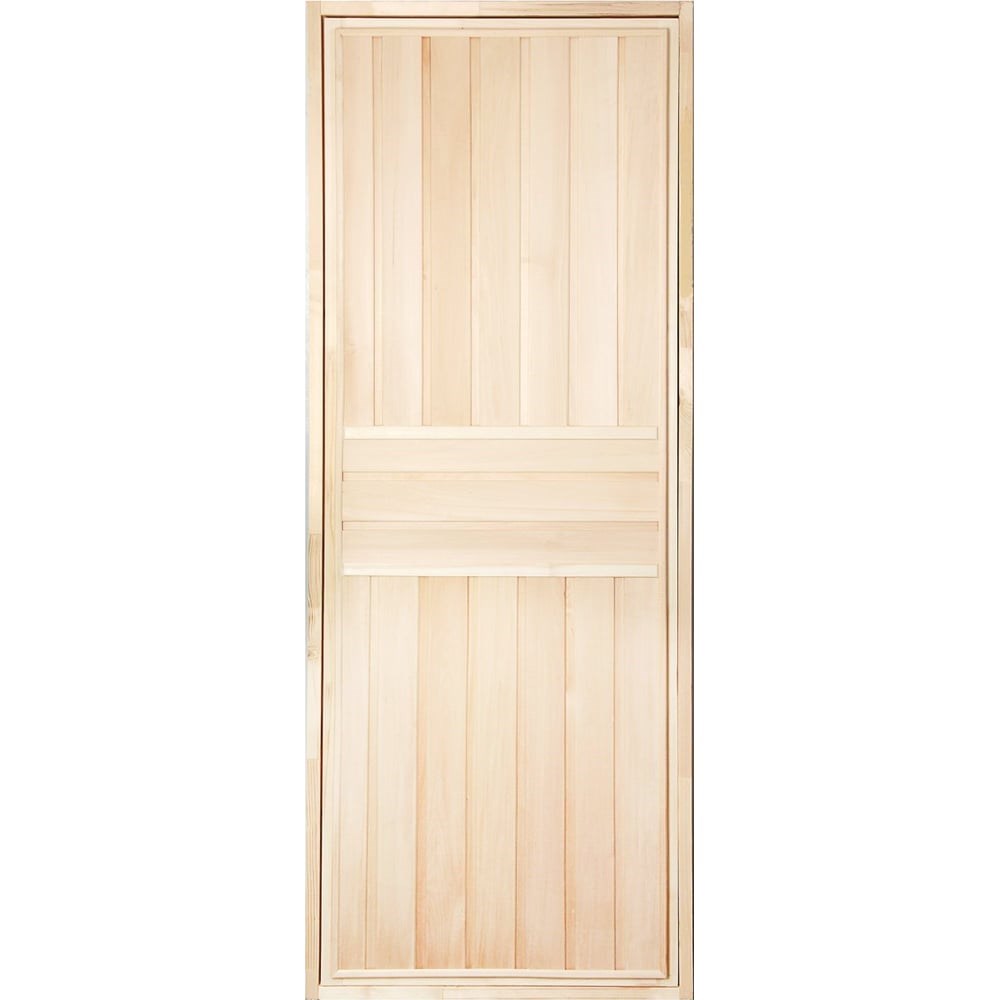 Дверь для бани Банная линия глухая, 1.7x0.7 м, липа, класс Б, коробка из липы, петли 12-931 используется в бане или в сауне. Изготовлена из натурального дерева, не боится высоких температур. Тип открывания: универсальная. Размеры коробки: 70х40 мм, параметры полотна 164х64 см.