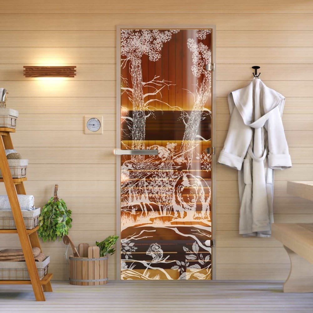 Дверь для бани DoorWood Мишка в лесу бронза, 2000x700 мм УТ-00014695 имеет приятный внешний вид, идеально подходит к любому интерьеру. Использование закаленного стекла способствует длительному сроку эксплуатации. Не требует особого ухода, легко моется и не вступает во взаимодействие с моющими средствами. Не деформируется при высоких температурах до 300°C. Дополнительные характеристики: Ручка: алюминий (снаружи), дерево (внутри); Петли: хромированные.