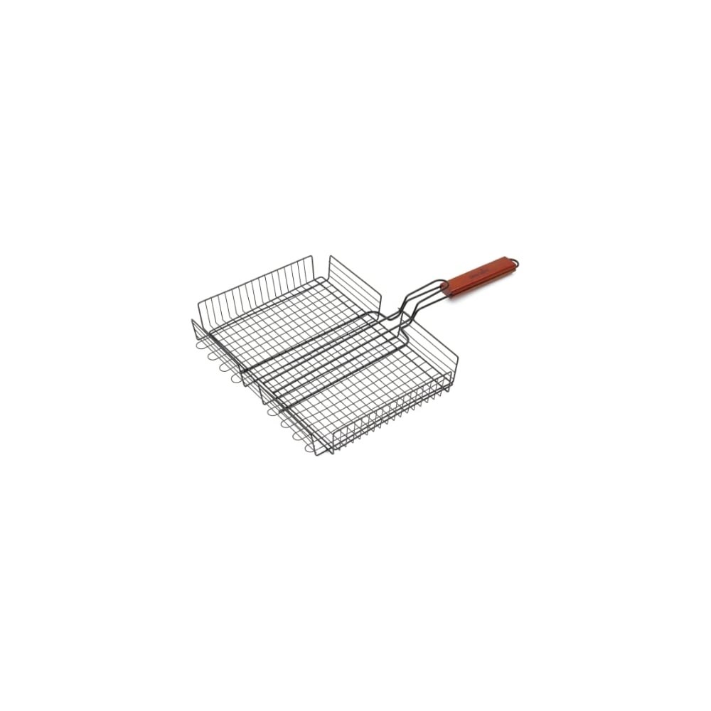Двойная объемная решетка-гриль с антипригарным покрытием Green glade 7001 активно применяется для кемпинга. Имеет достаточное рабочее место для размещения мяса, рыбы и овощей. Позволяет приготовить еду для большой компании отдыхающих. Решетка удобна в применении, проста в уходе, не занимает много места при хранении и транспортировке в багажнике автомобиля.