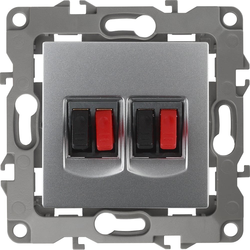Двойная аудио розетка ЭРА 12-3112-03 IP20, 12, алюминий Б0027463 сделана из поликарбоната. Монтаж в подрозетник производится и на лапки, и на винты. Рамки приобретаются отдельно.