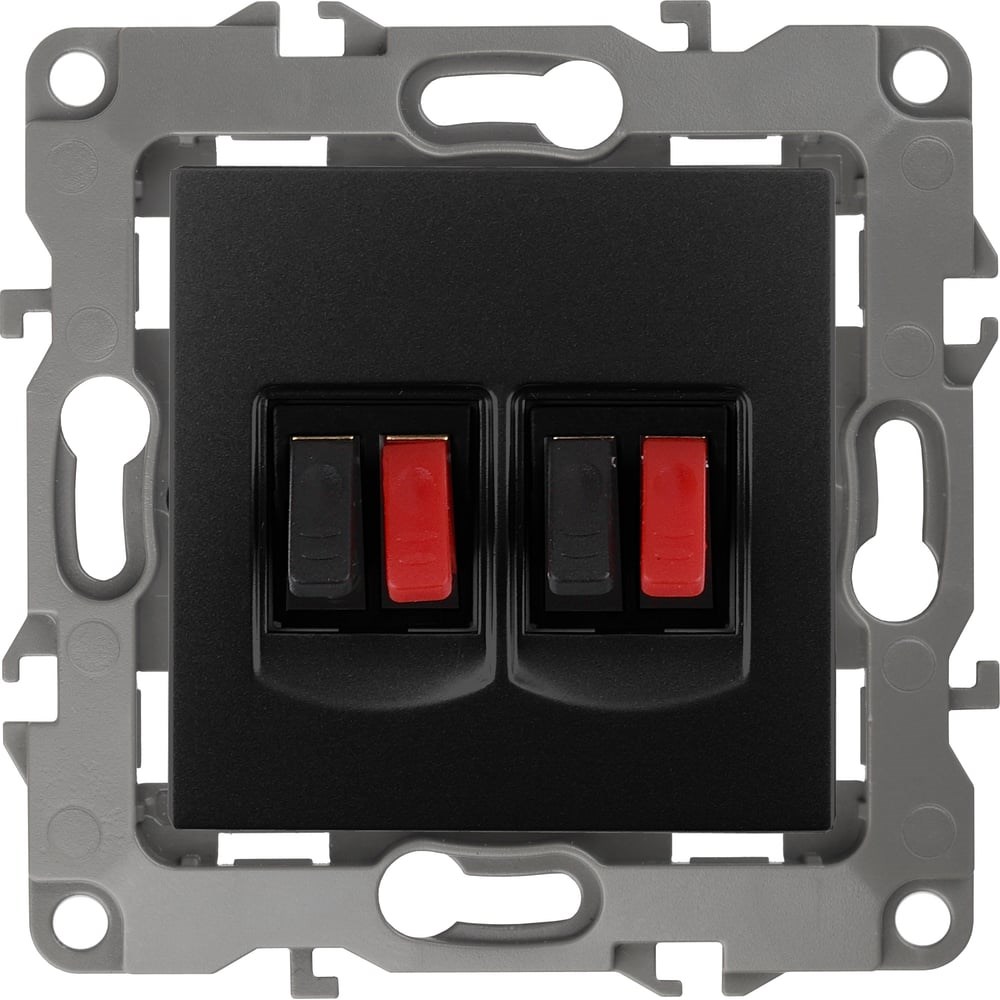 Двойная аудио розетка ЭРА 12-3112-05 IP20, 12, антрацит Б0027465 сделана из поликарбоната. Монтаж в подрозетник производится и на лапки, и на винты. Рамки приобретаются отдельно.