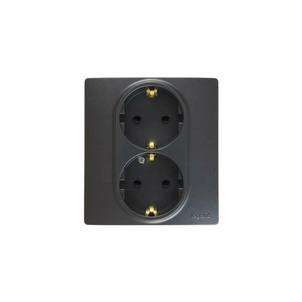 Розетка Legrand двойная с заземлением Legrand Etika со шторками в сборе 16А 250В безвинтовые зажимы антрацит 672633