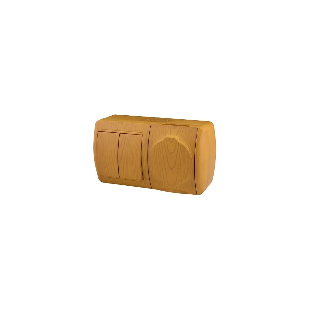 2-х клавишный выключатель и розетка с заземлением Lezard NATA с крышкой, ольха, горизонталь 710-0700-171
