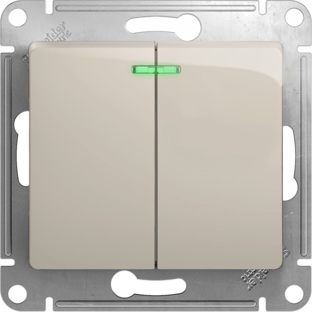 2-клавишный выключатель Systeme Electric Glossa Молочный с подсветкой, сх.5а, 10AX SE GSL000953