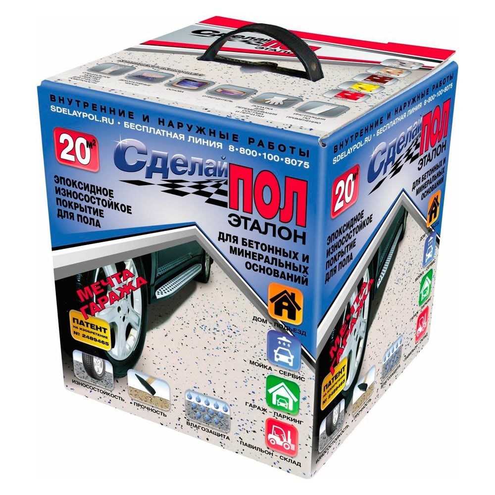 «Сделай ПОЛ Эталон» - двухкомпонентный, защитный, полимерный состав на эпоксидной основе, образует износостойкое, декоративное и долговечное покрытие, а также придает полу антистатические и антискользящие свойства. Готовое покрытие стойкое к воздействию механических нагрузок, появлению пыли и проникновению грязи, масел, воды в подложку. Состав «Сделай ПОЛ - Эталон» рекомендован для использования в торгово-складских помещениях, выставочных залах, гаражах, паркингах, автосервисах, станциях техобслуживания, автомойках, мастерских, цоколях и т.п. В комплект входят основа и отвердитель. Основа представляет собой раствор пигментов, наполнителей, модификаторов и пр. в эпоксидсодержащих смолах. Отвердитель представляет раствор полиамида. Массовая доля отвердителя в основе составляет 12%. Состав применяется на бетонные, полимерцементные и минеральных основания. Во избежание отслаивания и не полной полимеризации состава, выдержка новых бетонных полов и отремонтированных с применением сухих ровнителей и т.д., должна быть не менее 28 суток! Влажность основания не должна превышать 4%. Покрытие паронепроницаемо! Исключается нанесение на стекло, пластик, а на глянцевую керамическую плитку, керамогранит без предварительной абразивной обработки. Покрытие, образуемое составом «Сделай ПОЛ - Эталон» устойчиво при эксплуатации в условиях воздействия неагрессивной и слабоагрессивной среды с температурой от - 10°С до + 25°С. Нанесение состава при температуре не ниже +5°С.