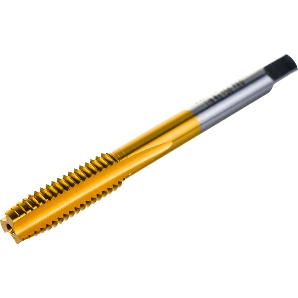 Метчик M8x1,25 HSS M2 TiN прямой компл. ПрофОснастка №150 арт. 50311020 выполнен по ISO 529, правый, точность 6H, предназначен для сквозных и глухих отверстий. Прямая канавка обеспечивает легкий отвод стружки при обязательном использовании СОЖ. Ресурс использования на любых металлах многократно увеличивается при использовании СОЖ. Покрытие нитрида титана увеличивает поверхностную твердость и износостойкость, а также обеспечивает повышенный ресурс. Также благодаря покрытию метчик может ограниченно использоваться на нержавеющих сталях. Общая длина метчика 72 мм, длина режущей части 22 мм, диаметр хвостовика 8 мм, посадочный квадрат 6,3 мм.