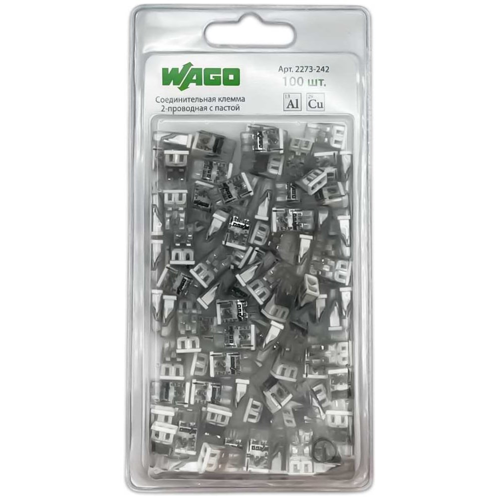 Клемма WAGO 2273-242 (с пастой) 100 шт. 2685 предназначена для соединения медных или алюминиевых одножильных проводников. Компактные размеры клемм позволяют использовать их в условиях ограниченного пространства. Прозрачный корпус позволяет визуально контролировать правильность положения проводника и длину снятия изоляции. Проводящая часть соединителя изготовлена из меди.