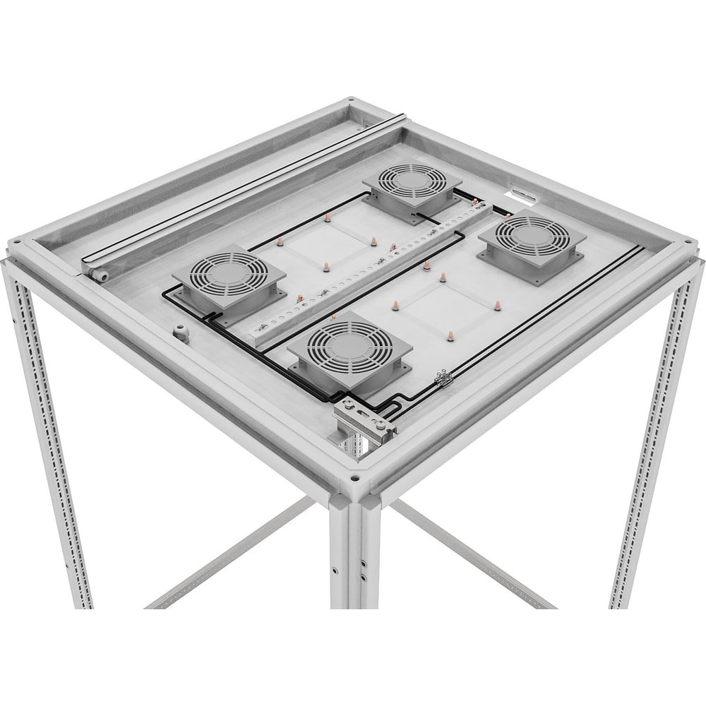 Вентиляторная двухсекционная панель УЗОЛА RS52 80.80 4 вентилятора, терморегулятор UR7712408080 предназначена для активной вентиляции. Устанавливается в проем потолочной панели линейных шкафов RS52 800х800 мм. Потолочная панель устанавливается на проставки М12/50. Панели оснащены вентиляторами серии FK6628.230 добором для организации места ввода кабеля. В качестве дополнительной опции блок можно расширить дополнительными вентиляторами.