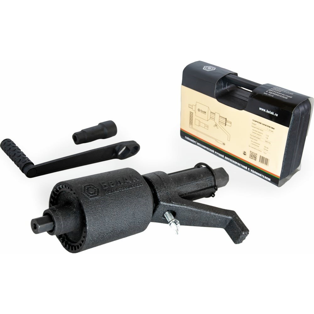 Двухскоростной гайковерт с удлинителем БелАК БАК.10118 выполнен из высокопрочных материалов, отличается повышенной надежностью и продолжительным сроком службы. Усиление крутящего момента осуществляется за счет планетарного трёхступенчатого редуктора. Данный инструмент служит для закручивания/откручивания тяжело нагруженных болтов и гаек при проведении шиномонтажных работ на грузовых автомобилях. Фирменный логотип на корпусе, выполненный на этапе отливки, защищает от подделок и является гарантом оригинальности изделия. Передаточное число: 1:56, то есть приложенное усилие будет увеличено в 56 раз. Наличие удлинителя позволяет легко производить монтажные работы с внутренними колесами задней оси многоосных грузовиков. Эта модель гайковерта «БелАК» с двумя скоростными режимами обеспечивает эффективное усиление крутящего момента (до 56 раз) для удобного откручивания прочных соединений при минимальной нагрузке на руки. Переключатель скорости вращения применяется для изменения значения передаточного числа усилителя крутящего момента. Смена режимов работы осуществляется посредством вытягивания наружу или вдавливания внутрь переключателя. В положении «низкая скорость» развивается максимальное значение крутящего момента, значение передаточного числа составляет 1:56. Применяется для срыва и окончательной затяжки колесных гаек. В положении «максимальная скорость» передаточное число составляет 1:4. Применяется для предварительного закручивания гаек пред окончательной затяжкой или для быстрого откручивания. В механизме редуктора гайковерта использованы подшипники, а не втулки скольжения, как у аналогов. В комплект входит надежный морозостойкий и ударопрочный кейс, который обеспечит удобное и безопасное хранение инструмента.