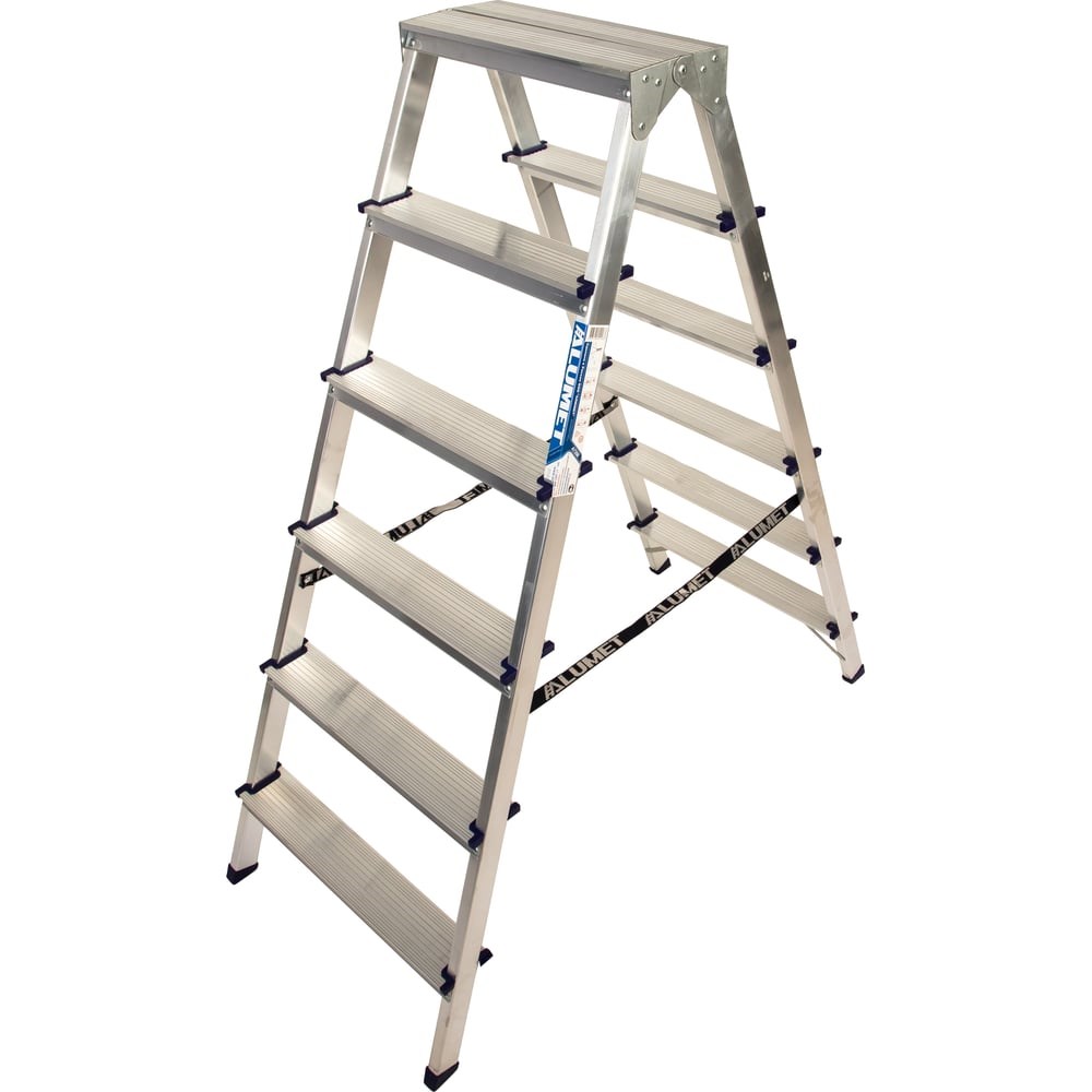 Стремянка алюминиевая двухсторонняя представляет собой свободностоящую переносную лестницу, сужающуюся к верху, имеющую две стороны для подъема на высоту.Тетивы и ступени стремянки изготовлены из высокопрочного алюминиевого сплава (ГОСТ 22233-2018), что обеспечивает прочность и долговечность при минимальном весе.Складная стремянка — ваш надежный помощник на производстве, в быту, идеальное решение для дома, офиса и сада.Стремянка в рабочем положении надежно фиксируется двумя страховочными ремнями. Верхняя рабочая площадка образуется только в рабочем положении из двух верхних ступеней.Ступени имеют рифленую противоскользящую поверхность, что способствует безопасному подъёму и спуску.!!!Универсальность конструкции позволяет доукомплектовать стремянку дополнительными заглушками ZGS и противоскользящими колпачками ZGS !!!Завод – изготовитель оставляет за собой право в одностороннем порядке вносить изменения в конструкцию, в целях улучшения технических характеристик.на линейные размеры отклонение может составлять +-5 мм, на вес изделия +-5%