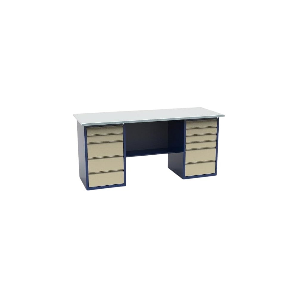 Двухтумбовый верстак Святогор СВ-2Т.05.06.19 имеет прочную износостойкую конструкцию из металла и широкую столешницу с покрытием из оцинкованного металла. Модель укомплектована двумя тумбами с выдвижными ящиками, что обеспечивает удобство хранения инструмента и необходимой оснастки под рукой. Верстак подходит для профессионального использования в слесарных мастерских.