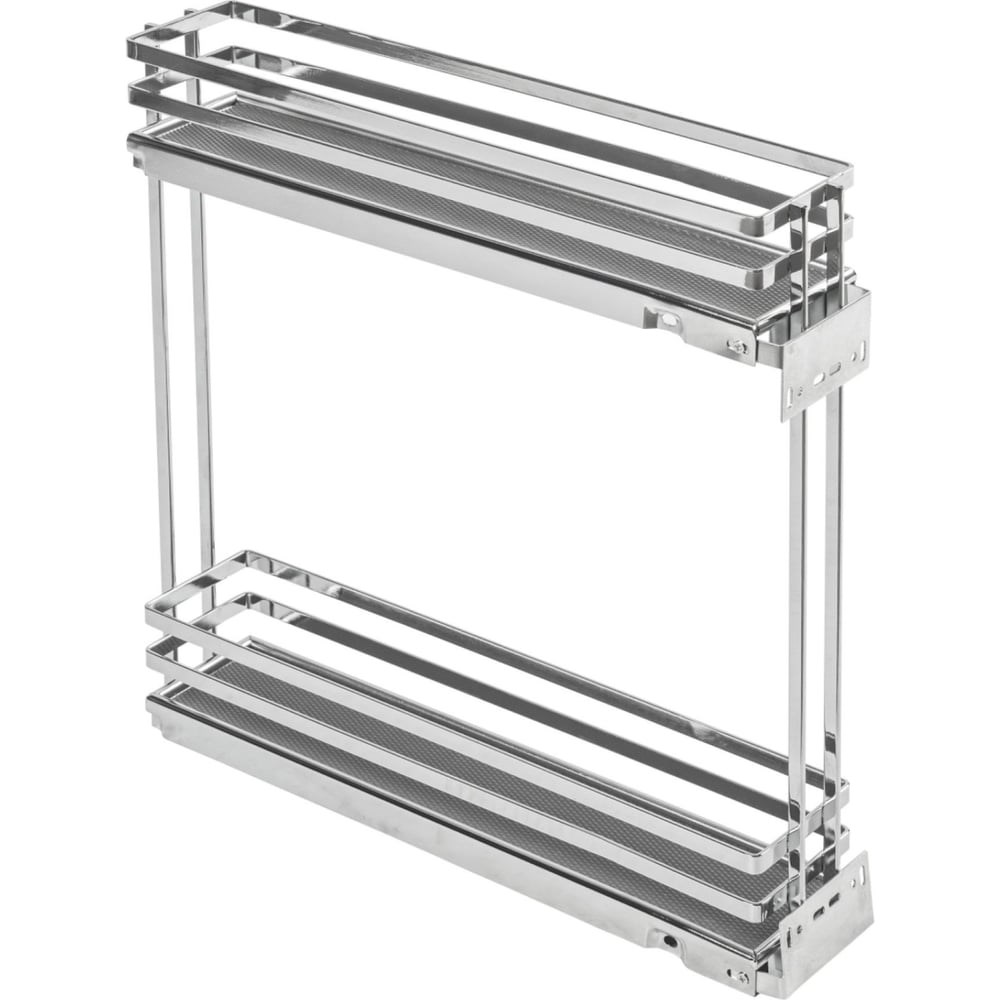 Двухуровневая боковая корзина MOVIX PRO в модуль 150 мм (бутылочница) Cargo без направляющих, хром (плоский прут) - выдвижная система хранения, устанавливаемая в нижний модуль кухонного гарнитура.Корзина изготовлена так, что в нее удобно ставить бутылки с напитками и жидкими продуктами питания, поэтому она также называется бутылочницей.Бутылочница поставляется без направляющих. Комплект фирменных шариковых направляющих MOVIX PRO (450 мм), для левосторонней или правосторонней установки, приобретается отдельно ПРЕИМУЩЕСТВАУниверсальность установки (монтаж с левой или с правой стороны).Предустановленные коврики на нижнем и верхнем уровнях.Система MOVIX PRO имеет сертификат SGS. (SGS представляет собой крупнейший в мире независимый орган по сертификации систем менеджмента и продукции на соответствие требованиям международных, отраслевых или корпоративных стандартов. Сертификат SGS признается в любой точке земного шара, символизируя соответствие установленным стандартам и передовым бизнес-практикам).