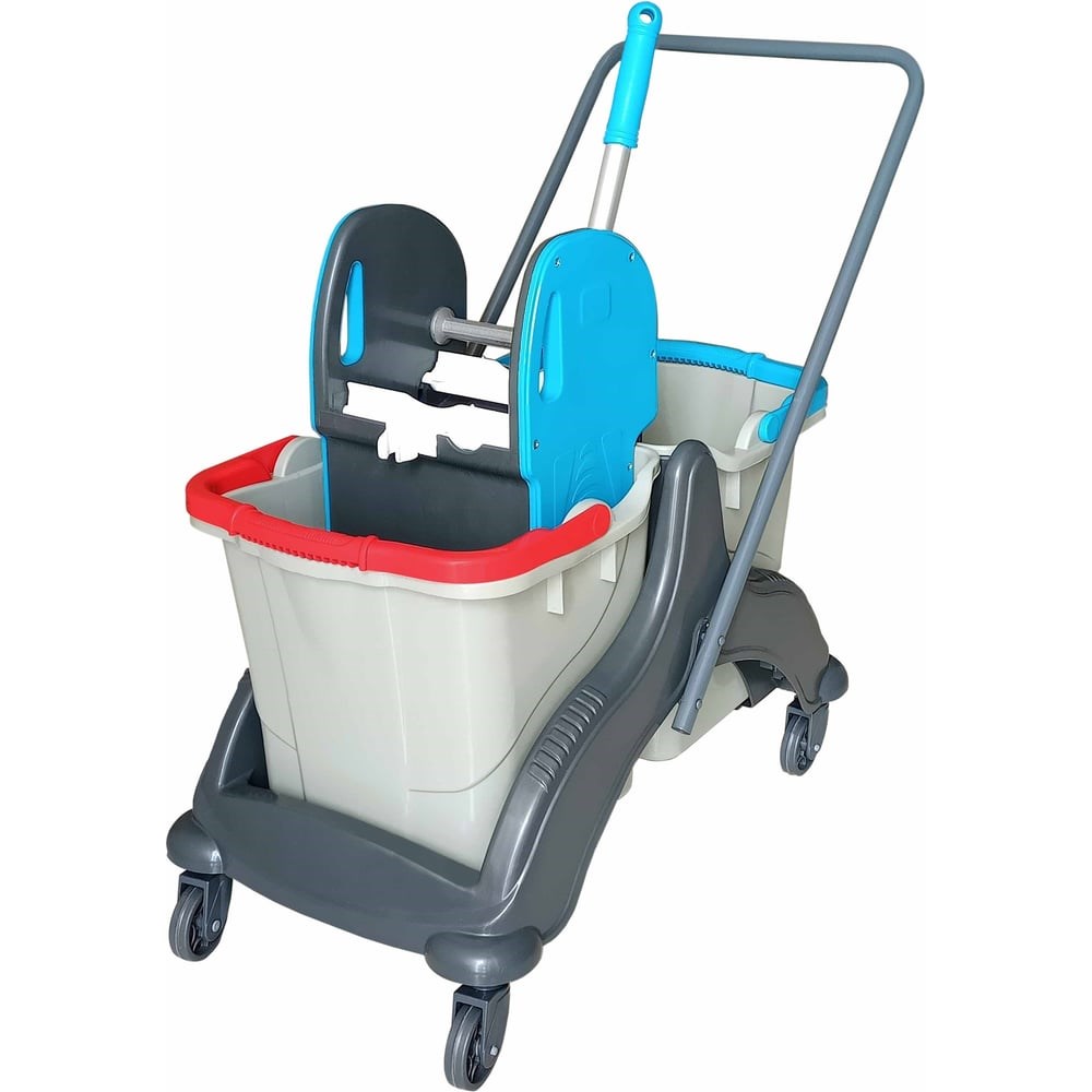 Тележка двухведерная с отжимом 2х25л подходит для уборки зданий различного типа: больниц, гостиниц, супермаркетов, производственных цехов, офисных зданий. Большое количество опций, удобство управления, раздельные ведра для чистой, грязной воды, великолепный ход, удобная ручка управления. Все элементы произведены из качественного пластика.
