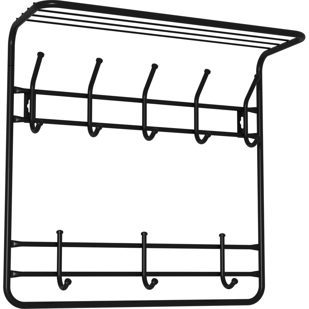 Двухъярусная настенная вешалка ЗМИ с полкой цвет черный ВСП8Ч предназначена для размещения одежды. Имеет полку, что позволяет хранить аксессуары и головные уборы. Благодаря высокой прочности изделие прослужит долго. Эстетичный дизайн вешалки украсит любой интерьер.