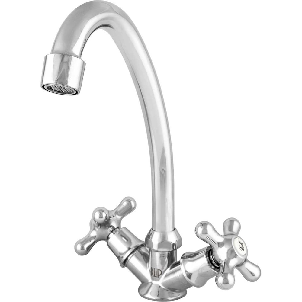 Двуручный смеситель для кухни Klip 705 крестообразный маховик, без подводки тов-205556 предназначен для установки на раковине, столешнице или мойке с помощью шпильки, фигурной скобы и прокладок. Оснащен округлыми пластиковыми маховиками и вертикальным трубчатым изливом. Выполнен из цинкового сплава, стойкого к коррозии, давлению и перепаду температур. Кран-буксы выполнены из латуни. Излив выполнен из нержавеющей стали и оснащен качественным аэратором с пластиковым сердечником.
