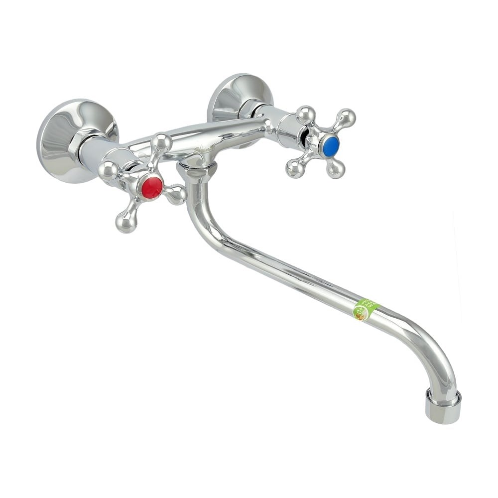 Смеситель для кухни Eleanti вентильный серии Opal, 0402.884. Стильный, современный, удобный кухонный смеситель (кран) предназначен для использования в городских квартирах или частных домах, имеет современный дизайн и изготовлен из материалов и комплектующих, отвечающих современным стандартам качества. Данная модель представляет собой надежный и современный смеситель с вертикальным способом установки, устанавливается на стену или панель. Тип крепления – жесткий. Смеситель имеет поворотный излив (гусак) S-образной формы, длина которого 265 мм, эко-сеточка аэратора выполнена из пищевой нержавеющей стали, насыщает воду кислородом, и позволяет уменьшить ее расход. Корпус смесителя выполнен из латуни с хромированным покрытием. Регулировать температуру воды и выбирать оптимальный напор струи удобно посредством двух стильных крестообразных металлических вентилей - маховиков. Запорный механизм смесителя - керамические кран-буксы в корпусе из экологичной латуни ЛС59, не выделяет вредных веществ под воздействием высоких температур. Все элементы конструкции смесителя устойчивы к коррозии, износу и механическим повреждениям, что продлевает период использования изделия. Хромированное гипоаллергенное покрытие не раздражает кожу. Смеситель этой модели так же можно использовать для ванны, без душевой лейки, длинный излив позволит направить поток воды в ванну или в раковину. В коллекции Opal представлены модели не только для кухни, но также для умывальника (раковины), ванны и душа, душевых кабин.