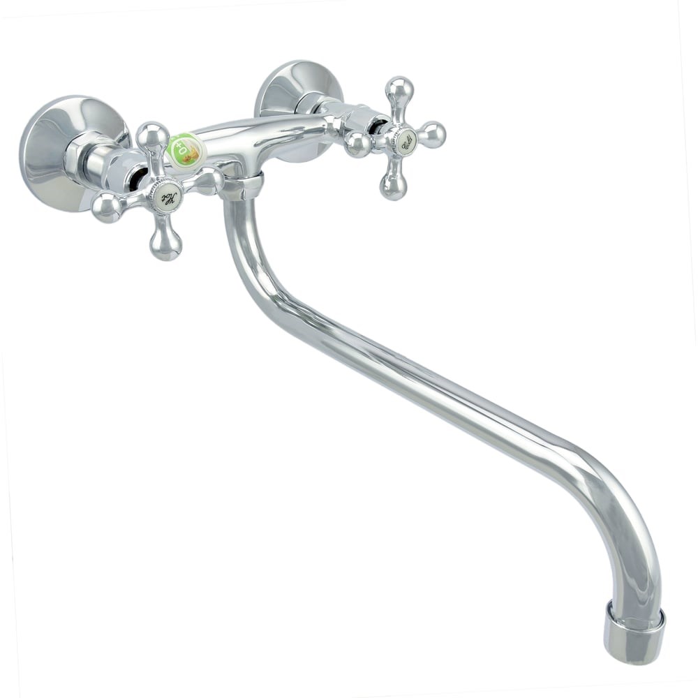 Кухонный смеситель (кран) предназначен для использования в городских квартирах или частных домах, имеет современный дизайн и изготовлен из материалов и комплектующих, отвечающих современным стандартам качества. Данная модель представляет собой надежный и современный смеситель с вертикальным способом установки, устанавливается на стену или панель. Тип крепления – жесткий. Смеситель имеет поворотный излив (гусак) классической S-образной формы, длина которого 300 мм, эко-сеточка аэратора выполнена из пищевой нержавеющей стали, насыщает воду кислородом, и позволяет уменьшить ее расход. Корпус смесителя выполнен из прочного сплава алюминия с кремнием с хромированным покрытием. Регулировать температуру воды и выбирать оптимальный напор струи удобно посредством двух стильных крестообразных вентилей - маховиков. Запорный механизм смесителя - керамические кран-буксы в корпусе из экологичной латуни ЛС59, не выделяет вредных веществ под воздействием высоких температур. Все элементы конструкции смесителя устойчивы к коррозии, износу и механическим повреждениям, что продлевает период использования изделия. Хромированное гипоаллергенное покрытие не раздражает кожу.Гарантия от производителя на корпус смесителя 3 года, на комплектующие 1 год.