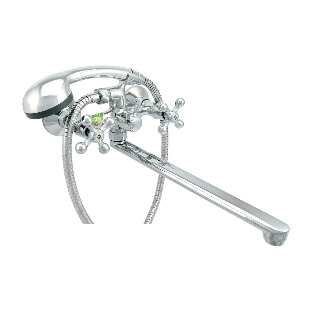 Ванно-душевой смеситель Juguni двуручный, с металлическим шлангом и хромированной лейкой 0402.656A