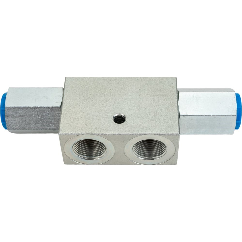 Гидрозамок двусторонний TLDHL1/2FF TITAN LOCK используется для блокировки потока жидкости в любую из двух сторон в гидравлических линиях под высоким давлением. Состоит из двух управляемых обратных клапанов, установленных в одном корпусе. Материал - углеродистая стальРабочая температура от +40°C до +70°CТип присоединения - BP/BP