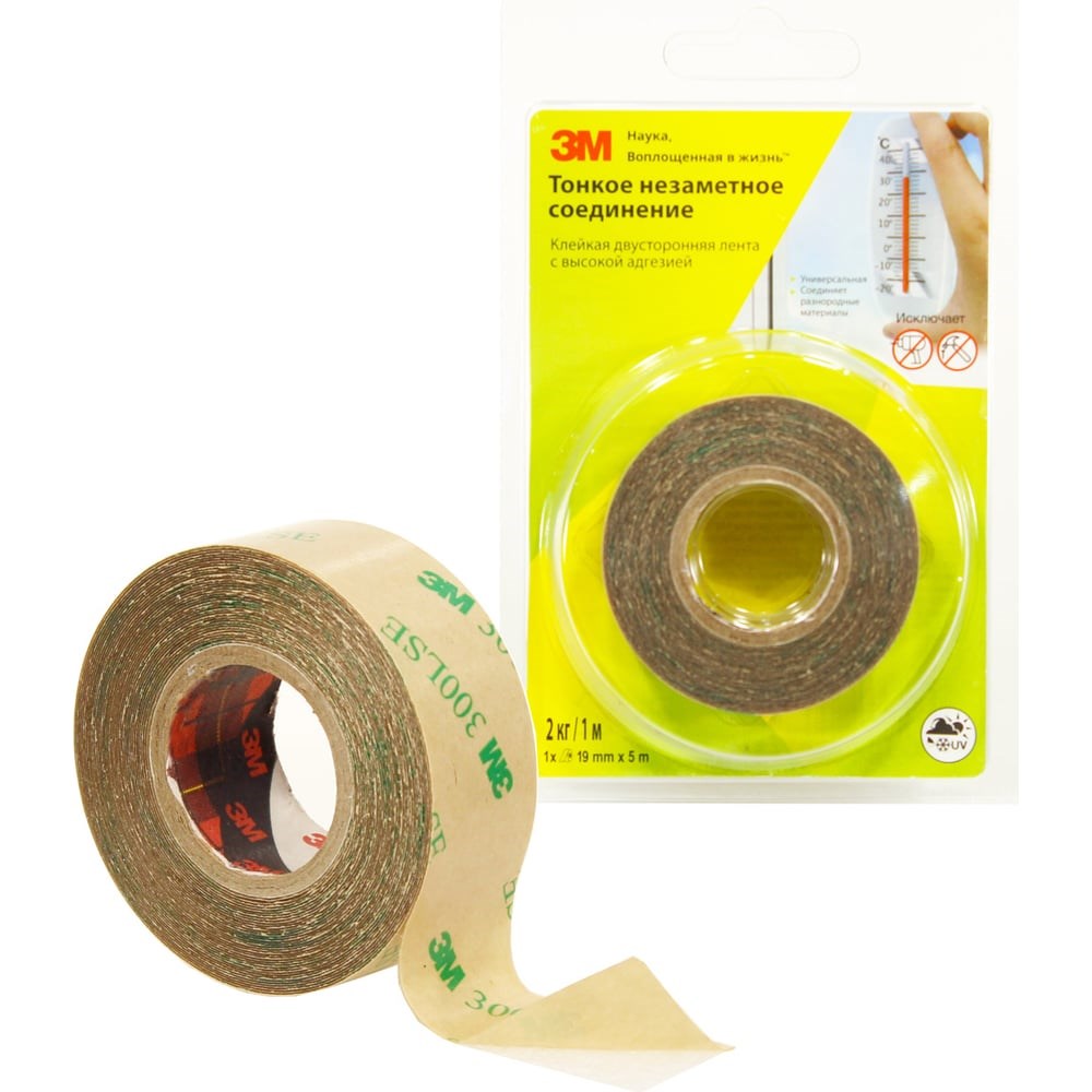 Клейкая двусторонняя лента с высокой адгезией 3М прозрачная, 19 мм х 5 м 4687202299843 имеет основу толщиной 0,012 мм из полиэфира, покрытую с двух сторон акриловым адгезивом 300LSE, толщиной 0,095 мм. Обладает высокой адгезией к большинству поверхностей, включая многие пластики с низкой поверхностной энергией, такие как полипропилен, а также краски на основе порошковых покрытий. Акриловый клей также обеспечивает прекрасную адгезию к поверхностям, загрязненным маслом, обычно используемым для смазки деталей машин.