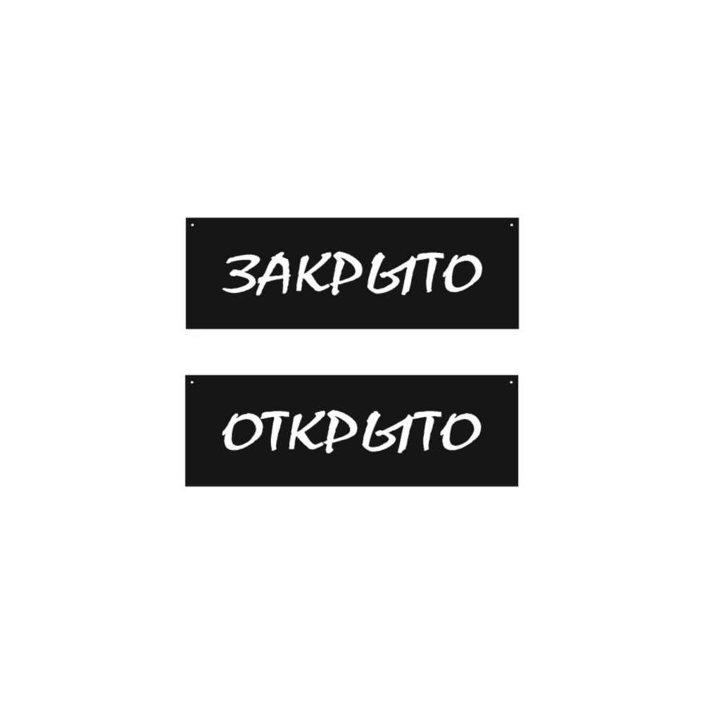 Табличка двусторонняя Открыто-Закрыто размером 300х100 мм выполнена методом прямой уф-печати на пвх 2 мм. Надпись напечатана шрифтом, который имитирует надпись мелом. Табличка с дырочками по верхним углам и продается с комплектом подвеса- веревочка и присоска.
