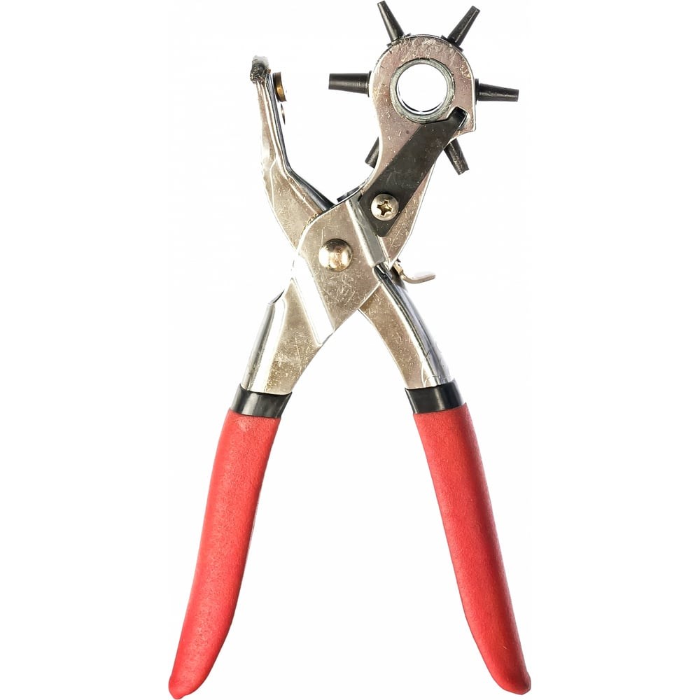 Дырокол-пробойник FIT 67425 обладает прочной стальной конструкцией. Удобные рукоятки оснащены пластиковыми накладками, что обеспечивает комфорт во время работы. Данный инструмент используется при отделке кожаных, текстильных и пластиковых изделий. Диаметры пробиваемых отверстий: 2-2,5-3-3,5-4-4,5 мм.