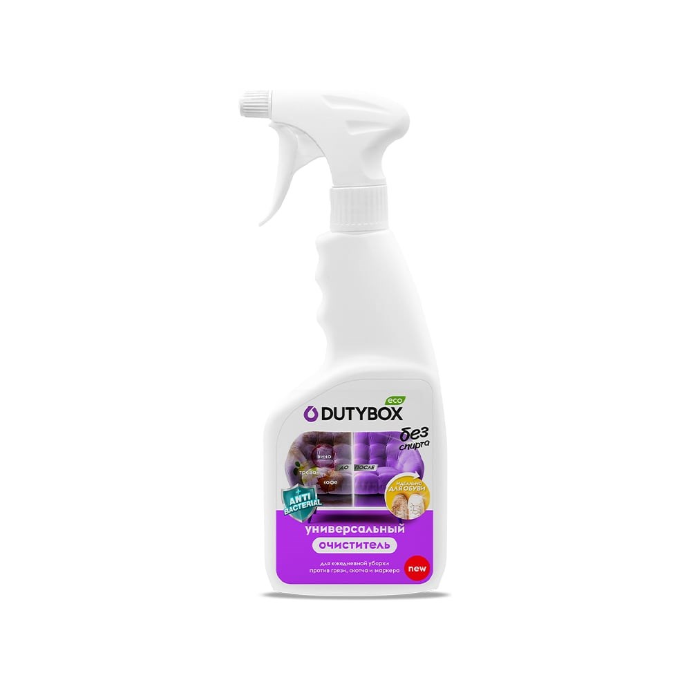 Эко-очиститель спрей любых поверхностей готов к использованию. Подходит для офиса, для чистки ковров, обуви, деревянных поверхностей, очистки мебели из ткани, кожи, матрасов, детских колясок и прорезиненных изделий, для кухни, для ванной комнаты, душевых кабин, от плесени, для духовки, ванной и туалета. Бережно ухаживает за поверхностью, не оставляет следов и разводов. Чистящее средство не требует смывания. Универсальный очиститель идеален для мебели, предотвращает оседание пыли. Средство для ежедневной уборки безопасен для людей и домашних животных, обладает антибактериальными свойствами. Фруктовый аромат поможет устранить неприятные запахи гари, табака, животных, еды. Бутылка многоразовая, подходит для разведения концентрата Дьютибокс. Для удаления загрязнений используйте губку или щетку, протрите сухой микрофиброй