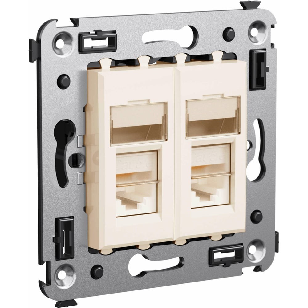 Двойная розетка DKC, Avanti RJ45, в стену, экранированная, категория 5e, ванильная дымка 4405364 используется для подключения телефонных/компьютерных кабелей и подключения патч-панелей. Компьютерная розетка предназначена для скрытого монтажа в стену. Розетка RJ-45 категории 5e – это наиболее популярная на сегодняшний день модель, обеспечивающая высокую скорость передачи данных (до 1000Мбит/с). Материал – металл, пластик. Пластиковые части изделия выполнены в спокойном пастельном цвете "Ванильная дымка", сочетающемся со светлыми тонами и насыщенными теплыми оттенками.