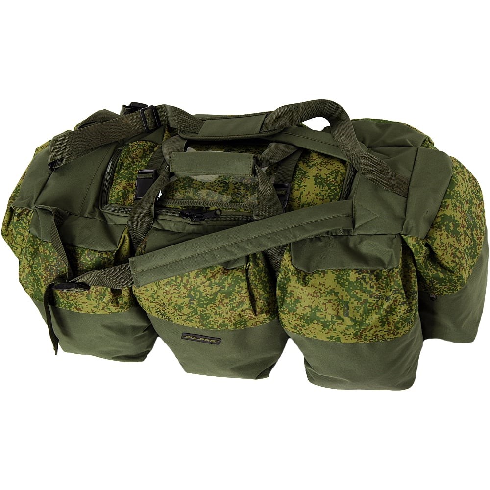 Сумка-рюкзак SOLARIS Экспедиционная 120 л, Пиксель/олива S5205 предназначен для хранения большого количества вещей. Используется в походе, активном отдыхе, дальних экспедициях, охотничьих туров. Универсальная модель оснащена двумя дополнительными плечевыми лямками, благодаря которым сумку можно использовать как рюкзак. Сумка имеет одно основное отделение и восемь больших боковых карманов, что позволяет функционально расположить вещи. Модель сшита из высококачественной износостойкой непромокаемой ткани ПВХ. Это обеспечивает отличную защиту вещей от дождя, снега и во влажных помещениях.