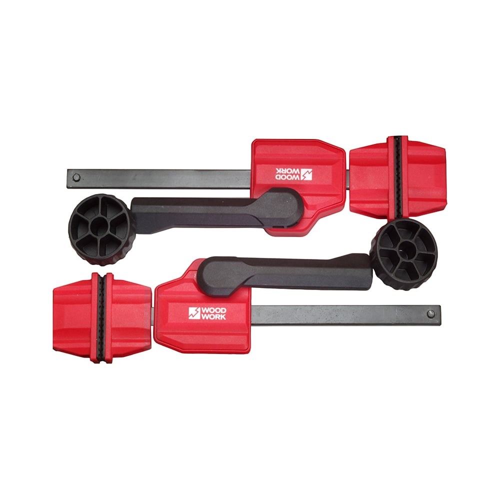 верстачный эксцентриковый прижим WOODWORK CLM-006 обработка заготовок на столярном верстаке будет удобной при использовании прижимов WOODWORK CLM-006, фиксирующих детали на поверхности стола также ими можно оснастить любые приспособления, станки и применять в самых разных работах после фиксации заготовки можно выполнять с ней различные операции, такие как шлифование, пиление, строгание и т.д комплект CLM-006 WOODWORK включает в себя два прижима, два упора и четыре зажимных винта Верстачный прижим должен должен устанавливаться в отверстия на рабочем столе, которые выполняются самостоятельно: • для установки в отверстия⌀20 мм Если необходимы дополнительные винты для фиксации губок, то подойдут звездообразные рукоятки Woodwork 995.08.20 В случае если столешница имеет толщину более 25 мм можно использовать звездообразные рукоятки Woodwork 995.08.30 или 993.08.25