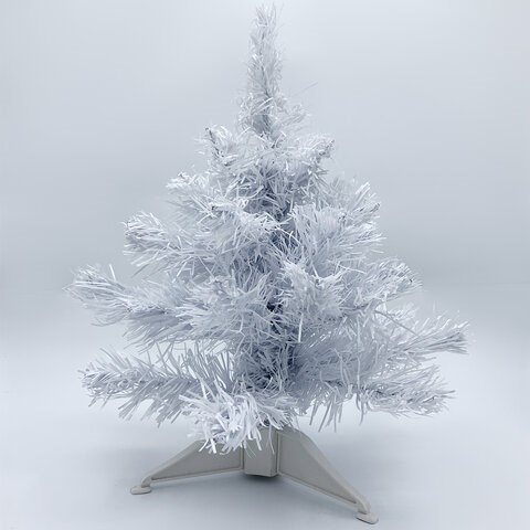 Ель искусственная настольная представляет собой конструкцию из металлического каркаса и закрепленных к нему ветвей. Материал хвои - ПВХ. Цвет хвои - белый. Высота ели - 30 см. Тип крепления ветвей к стволу - примотка. Данный тип крепления подразумевает, что ветви уже прикреплены к стволу и после покупки необходимо самостоятельно расправить веточки для того, чтобы ель приобрела нужную форму. Материал подставки - пластик.