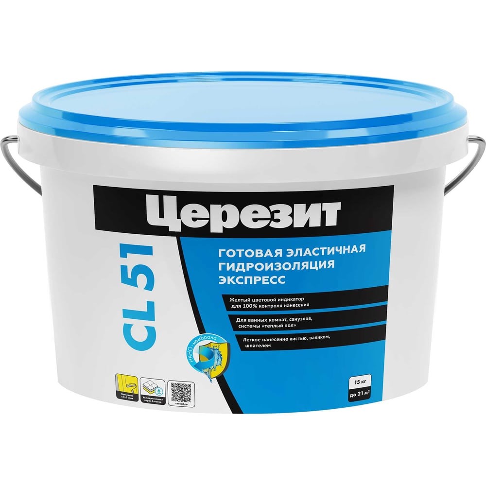 Гидроизоляция эластичная полимерная Церезит CL 51 15 кг 2572047 - однокомпонентная полимерная масса, применяемая для создания эластичных водонепроницаемых покрытий перед устройством плиточных облицовок в помещениях, подверженных периодическому увлажнению (ванных, душевых, туалетах, кухнях и т. д.). Готова к применению. Подходит только для внутренних работ. Не содержит растворителей.Преимущества:готова к применению;легко наносится кистью, валиком или шпателем;эластичная;перекрывает трещины раскрытием до 0,75 мм;может применяться на стяжках с подогревом;пригодна только для внутренних работ;идеальна для ванных комнат с инсталляцией;не содержит растворителей;экологически безопасна.