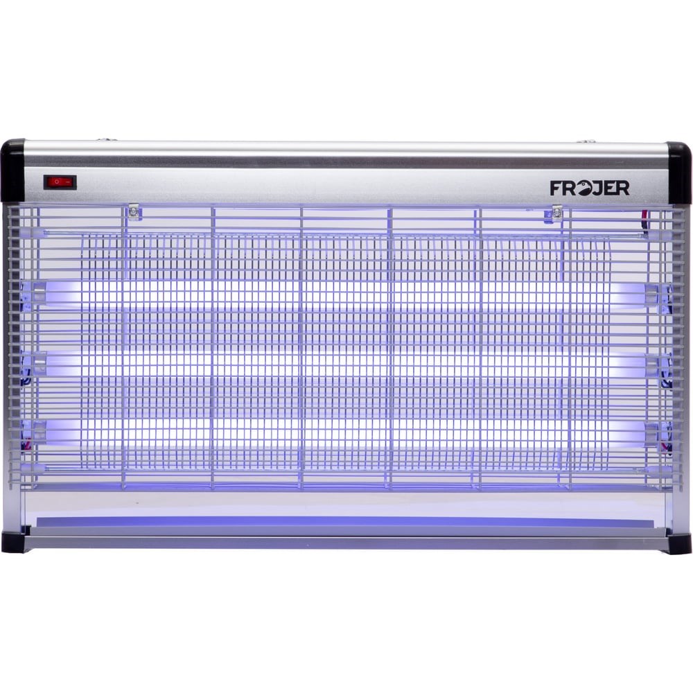 Ловушка для насекомых электрическая Frojer PRO D60IN-FSL - это эффективное и безопасное устройство номинальной мощностью 70 Вт, которое обеспечивает защиту от комаров, мошек, мух, ос, моли и других летающих насекомых на площади до 180 кв. м. (здесь имеется в виду площадь охвата и привлечения насекомых к прибору). Предназначена для использования на верандах, в беседках и в других закрытых жилых, торговых или производственных помещениях. Ее эффективность достигает максимума в темное время суток или сумерки, когда насекомые наиболее активны и посторонний свет не заглушает фонарь. Однако, противомоскитный эффект при свете слабее, чем в темноте, так как лампа становится менее заметной для насекомых и не выглядит для них очевидной целью. Антимоскитная лампа D60IN-FSL привлекает насекомых ультрафиолетовым свечением в привлекательном для них диапазоне 365-395 нм, создаваемым люминисцентной FSL лампой, расположенной в центре корпуса. Подлетающие на свет к сетке на расстояние ближе 0,3 мм вредители поражаются тихим электрическим разрядом, который возникает между прутьями, расположенными вокруг источника света. Благодаря этому, электроловушка работает бесшумно и не издает неприятных звуков, что делает его более комфортным для пользователя. Привлеченные УФ светом насекомые погибают при контакте с сеткой, а вертикальное расположение прутков делает ее самоочищающейся - комары, моль, осы, мухи просто падают вниз в съемный лоток.