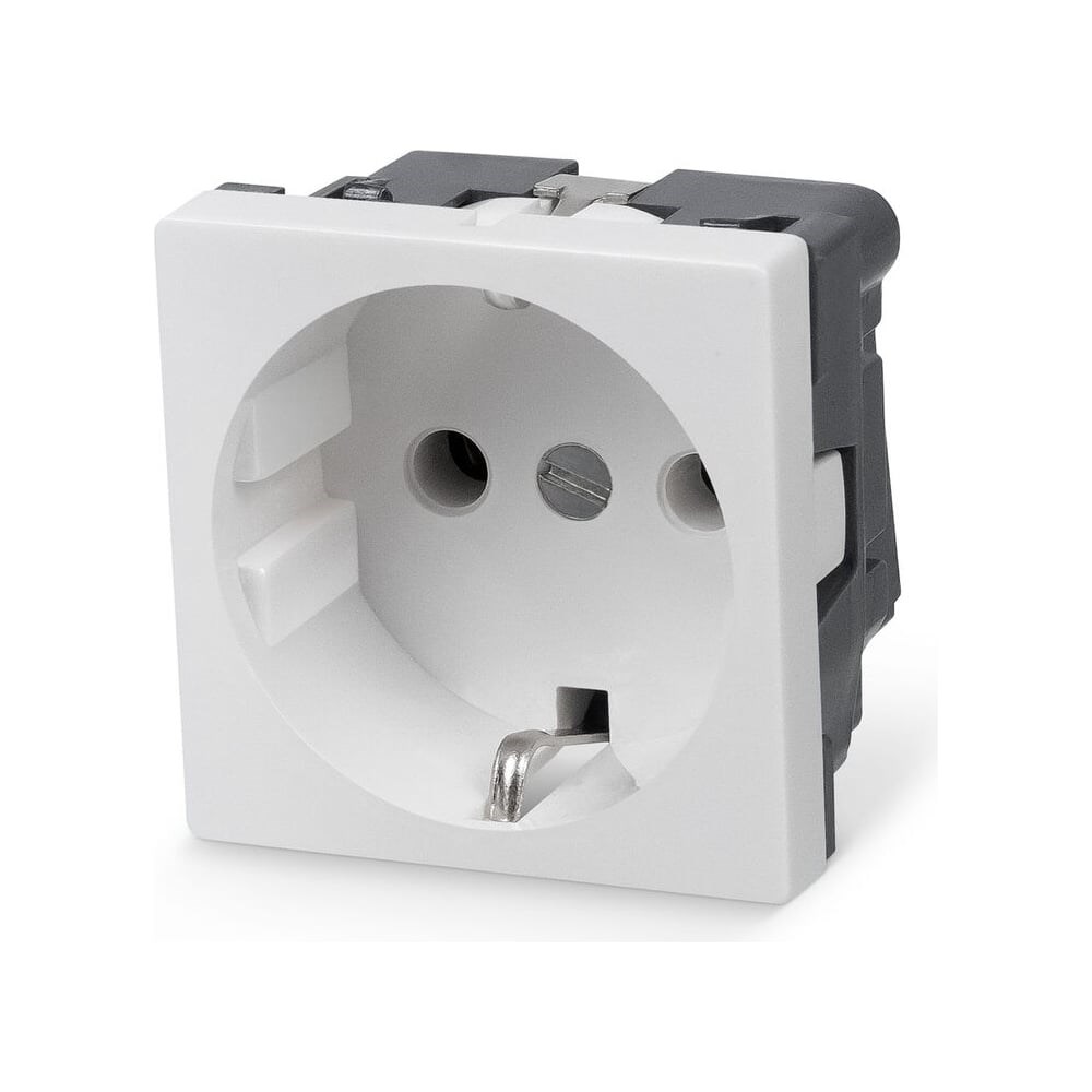 Электрическая розетка используется для установки в кабельные каналы, в настенные конструктивы или скрытно в стену. Розетка имеет стандартный размер Mosaic 45x45, благодаря чему может использоваться в розеточных суппортах различных производителей. Предназначена для подключения электрических приемников бытового и промышленного назначения с номинальным током до 16 А и напряжением до 250 В. Имеется заземляющий контакт немецкого стандарта. Материал розетки не поддерживает горение. Розетка имеет разборную конструкцию и состоит из двух частей: механизма основания и лицевой панели, белого цвета.