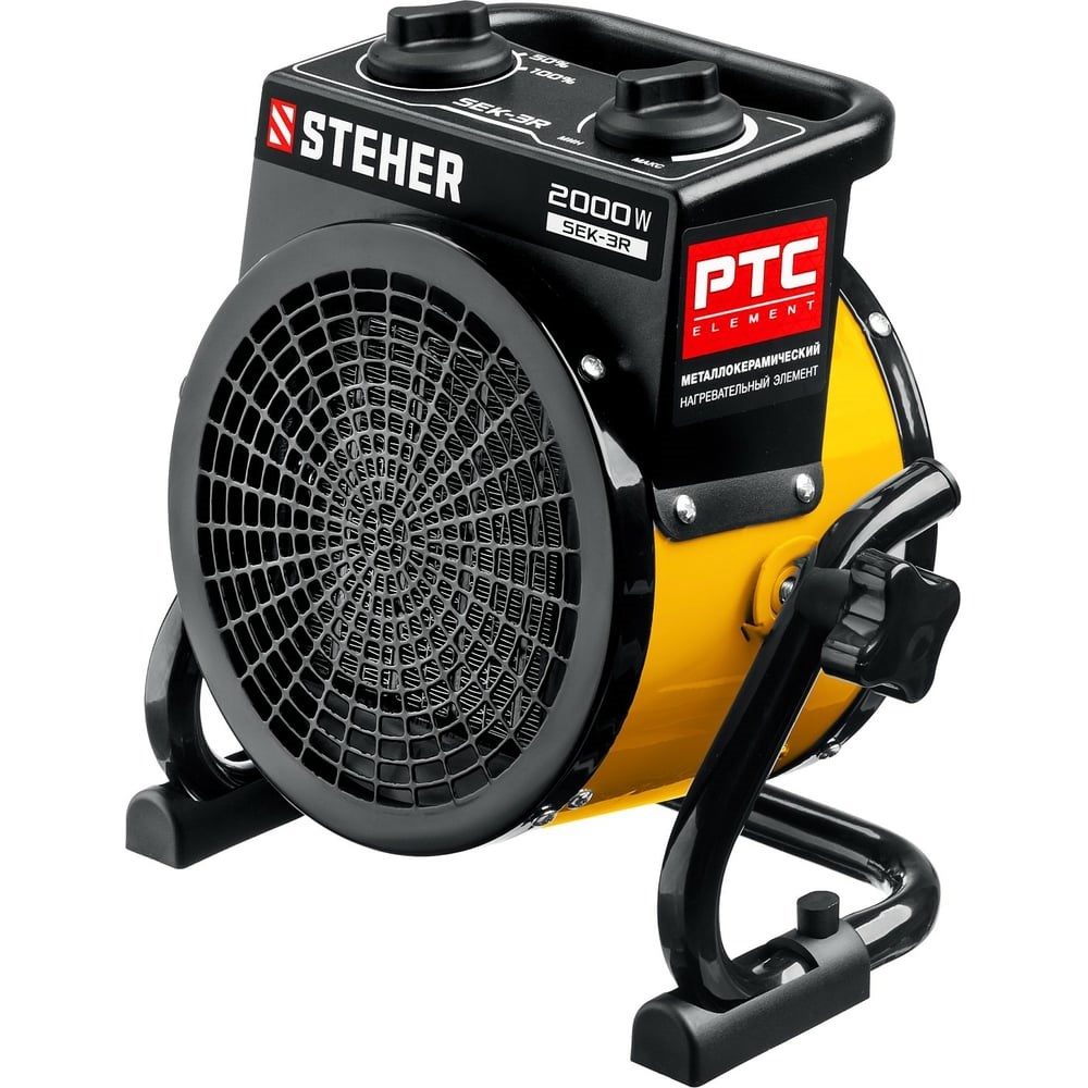 Электрическая тепловая пушка STEHER 2 кВт, МКН SEK-3R - компактное устройство в круглом корпусе для обогрева небольших помещений. Благодаря небольшим размерам тепловую пушку легко переносить и хранить. Модель оснащена долговечным металлокерамическим нагревательный элементом, который обеспечивает быстрый равномерный нагрев, экономное потребление электроэнергии и не сушит воздух. Механический терморегулятор поддерживает нужную температуру нагрева. За счет большой площади теплообмена и небольшой температуры нагрева элемента, воздух быстро прогревается. Изделие можно оставлять на долгое время и не бояться за сохранность помещения, так как конструктивные меры безопасности защищают пользователя и изделие при нештатных ситуациях. Применяется для генерации горячего воздуха, который может быть использован для обогрева, сушки бытовых и промышленных помещений и т. д.