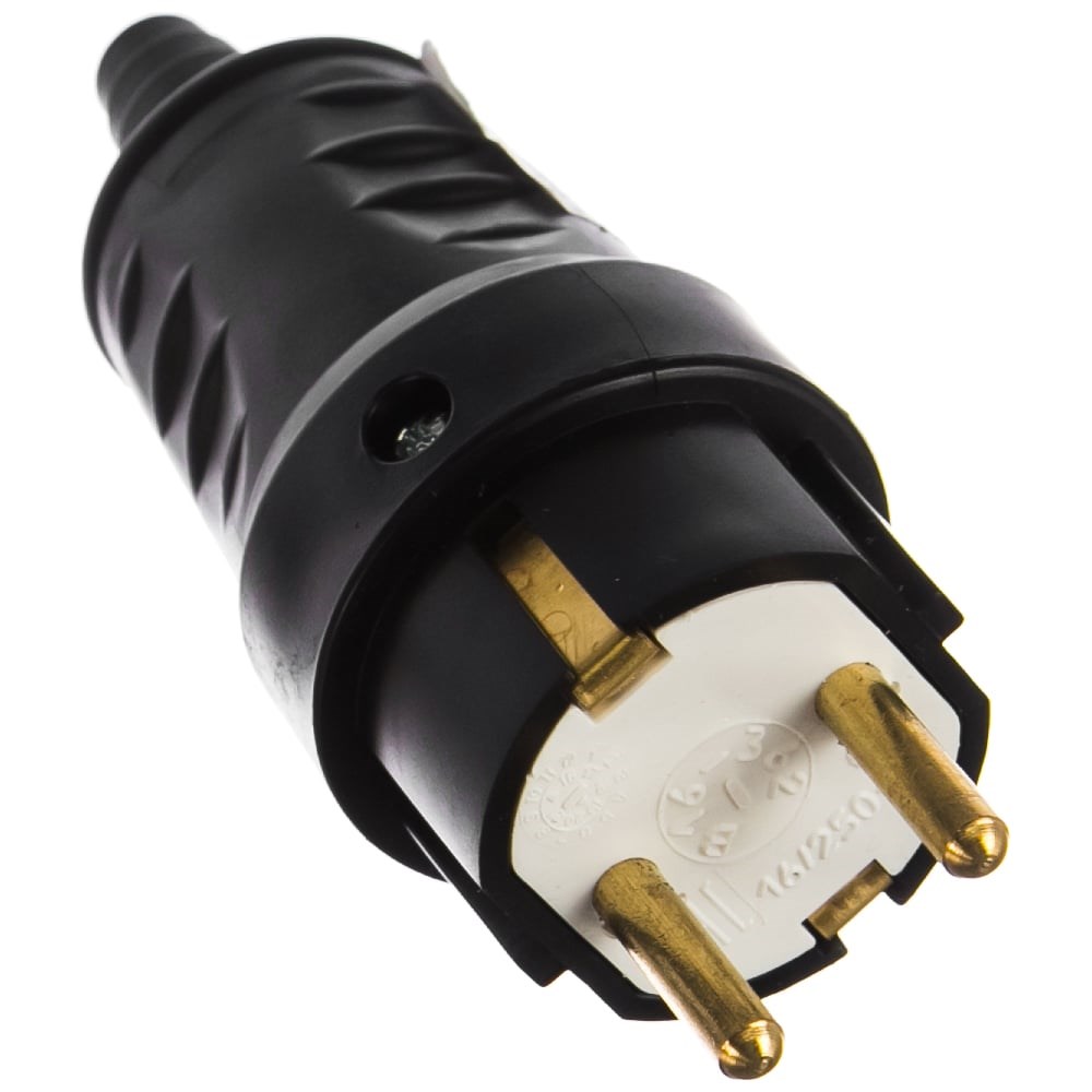 Электрическая ударопрочная вилка с заземлением, 16А / 220В, черная СИБИН 55115-B - электромонтажное изделие штепсельного типа с легкоразборной конструкцией. Используется для крепления на проводе и создания питающего соединения для различного силового оборудования мощностью до 3,5 кВт, которое подключается к однофазной сети переменного тока с напряжением 220 В, частотой 50 Гц.