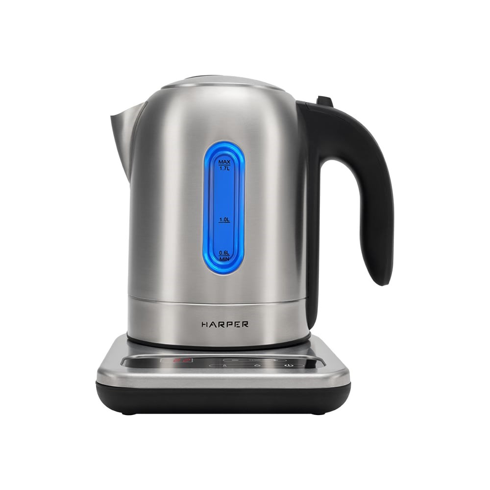 Электрический чайник Harper HWK-MD06 вместимостью 1,7 литра может кипятить и нагревать воду без кипячения в диапазоне температуры: 40, 50, 60, 70, 80, 90, 100 °С. С помощью подставки с сенсорным управлением и LED-дисплеем можно выбрать подходящий режим работы чайника – кипятить, нагревать воду (с шагом в 10°С) или выбрать режим дехлоринации воды (очищение воды от хлора или других летучих соединений). Корпус чайника Harper HWK-MD06 выполнен из нержавеющей стали, которая не портится от перепадов температуры и не выделяет токсичных веществ. Также на корпусе расположена шкала уровня воды с подсветкой. Крышка чайника открывается в одно касание, а широкая горловина позволит легко набрать воду. Безопасность чайника Harper HWK-MD06 обеспечивает встроенный контроллер, который обесточит ТЭН при отсутствии воды или прекратит подачу тока в случае снятии чайника с подставки.