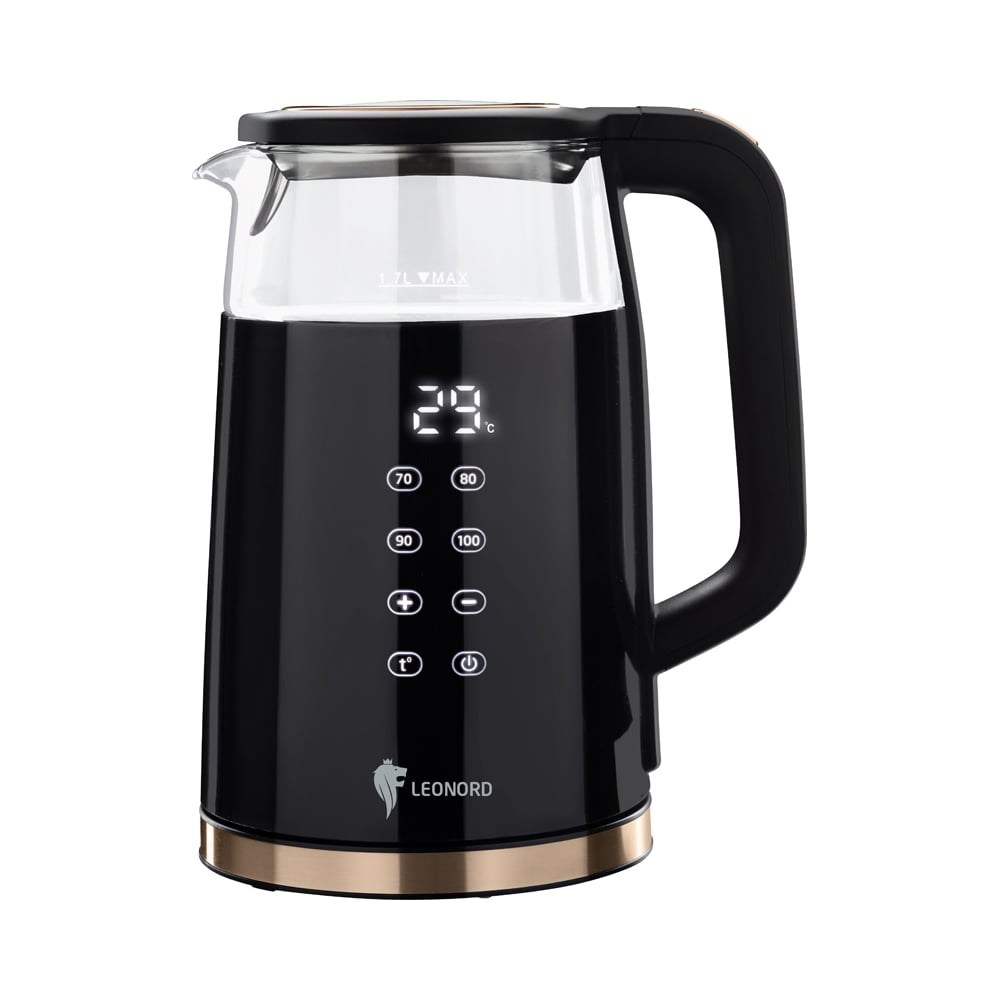 Объем: 1.7л Двойной корпус Поворот на подставке 360° Защита от работы без воды Автоматический выключатель Сенсорное управление LCD дисплей на корпусе поддержание температуры 4 уровня установки температуры нагрева воды 70℃,80℃,90℃,100℃ 2 часа поддержание температуры функция памяти Мощность: 1850-2200Вт Контроллер: OTTER Гарантия 2 года