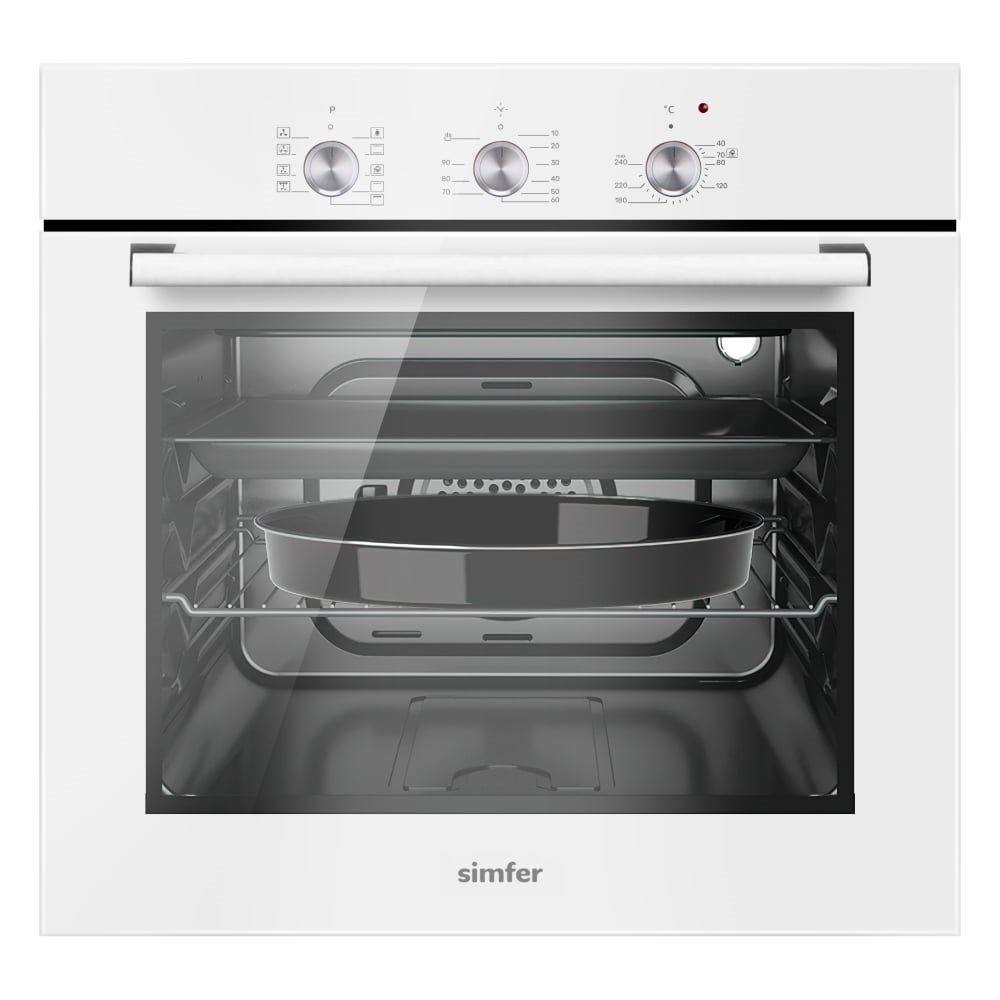 Электрический духовой шкаф SImfer 9 режимов работы, конвекция, гриль B6EW19071- современная техника для кухни, которая благодаря многообразию режимов, позволяет готовить не только повседневную пищу, но и изысканные блюда. Снабжена функцией конвекции, которая равномерно распределяя теплый воздух, пропекает блюдо со всех сторон. С помощью удобных поворотных ручек легко выбрать необходимый режим приготовления для любого рецепта. Встроенная подсветка позволит наблюдать за процессом, не открывая при этом дверцу шкафа, а значит сохраняя тепло внутри. Таймер подскажет, когда блюдо будет готово, а двойное стекло защитит от ожога при случайном прикосновении к дверце шкафа. Эта простая в управлении, стильная и современная техника прекрасно впишется как в классический интерьер, так и в самый современный. При первом запуске рекомендуем протопить печь 15 минут при 200°C с противнем, наполненным водой (300-400 г.), для прогорания заводской смазки.