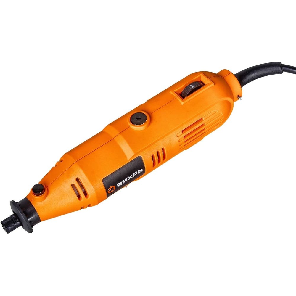 Электрический гравер Вихрь Г-150 – это ручной электроинструмент, который отличается многофункциональностью. Может использоваться для выполнения различных задач. Им можно шлифовать и полировать, наносить гравировку, фрезеровать и прочее. Гравер мощностью 150 Вт подходит для работы с деревом, камнем и другими материалами, для этого необходимо использовать соответствующие насадки. Может применяться в быту, а также в различных мастерских, в производственных цехах, на фабриках.Электродвигатель передает вращение на рабочую насадку посредством вала. Максимальная частота вращения может достигать 34000 об./мин. Возможность блокировки шпинделя существенно упрощает замену оснастки. Достаточно кнопкой зафиксировать вал, чтобы легко открутить гайку.Для удобства Вихрь Г-150 имеет кнопку выключения/включения в виде тумблера, который можно зафиксировать в необходимом положении, поэтому не нужно кнопку постоянно удерживать в процессе работы. Вес инструмента составляет 620 г, поэтому даже при длительной работе рука не устает. Скорость частоты вращения регулируется колесиком. Электрический гравер имеет быстрый доступ к щеткам, что существенно упрощает их замену и обслуживание инструмента. Поставляется гравер в пластиковом кейсе, поэтому его удобно хранить и транспортировать.