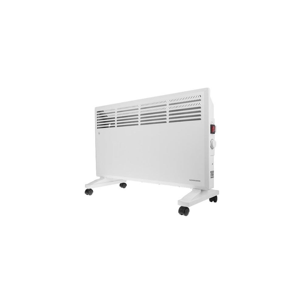Электрический конвектор NORMANN ACH-204 снабжен колёсиками для передвижения по полу и кронштейнами крепления к стене. Нагревательный элемент у данного конвектора монолитный алюминиевый (Х-образный). Площадь обогрева до 23 м2. Поскольку у конвектора нет вентилятора, он не гудит. Ручка термостата позволит постоянно поддерживать в комнате комфортную температуру. Конвектор имеет двухрежимный выключатель: режим экспресс-нагрева и экономичный режим. Есть автоотключение при опрокидывании и перегрева.