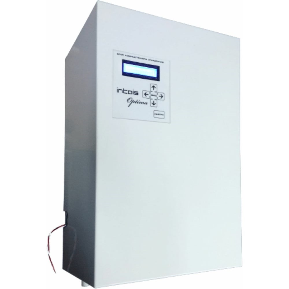 Интоис электрический котел Оптима Н 9 кВт INTOIS 187 - автоматический электронагревательный котёл предназначен для отопления индивидуальных жилых домов, коттеджей, дач, торговых помещений и других отдельно расположенных зданий различного назначения, а также как индивидуальный квартирный генератор тепла. Электрокотел с погодозависимой автоматикой. Полностью автоматизирован и имеет микропроцессорное управление. Предусмотрено 2 режима работы и 4 программы настройки, что позволяет оптимизировать эксплуатацию котла и существенно снижает потребление электроэнергии. Группа безопасности: Предохранительный сбросной клапан. Есть возможность работы котла с помощью датчиков: температуры теплоносителя, температуры воздуха в помещении, температуры окружающей среды. Обратите внимание датчики: температуры окружающей среды и температуры теплоносителя приобретаются отдельно. В данной модели не предусмотрен расширительный бак, будьте внимательны. Управление при помощи GSM модуля: Предусмотрено опциональное подключение модуля GSM для контроля параметров системы отопления и управления функциями котла с помощью сотового телефона или планшета. GSM-модуль также позволяет получать аварийные оповещения, можно подключить охранную и пожарную сигнализацию, и всегда быть в курсе событий с любой точки мира. Обратите внимание, GSM-модуль в комплект не входит.