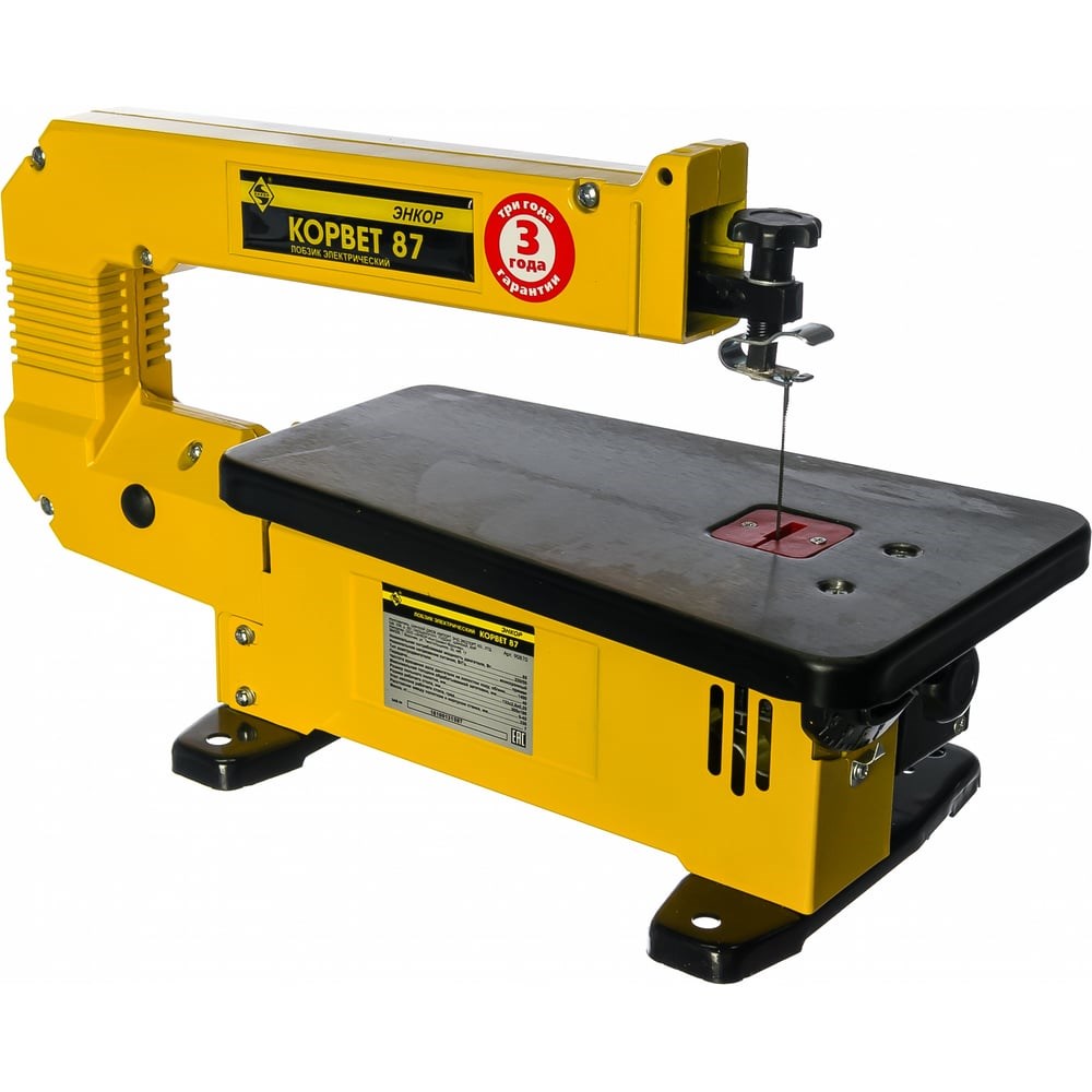 Электрический лобзиковый станок Энкор Корвет-87 90870 предназначен для использования в бытовых целях. Это удобный инструмент для изготовления мебели для дачи или дома. Ножки обеспечивают надежную устойчивость, увеличенный вылет рамы позволяет делать внутренние пропилы. Рабочий стол регулируется, поэтому можно выпиливать более сложные фигуры.