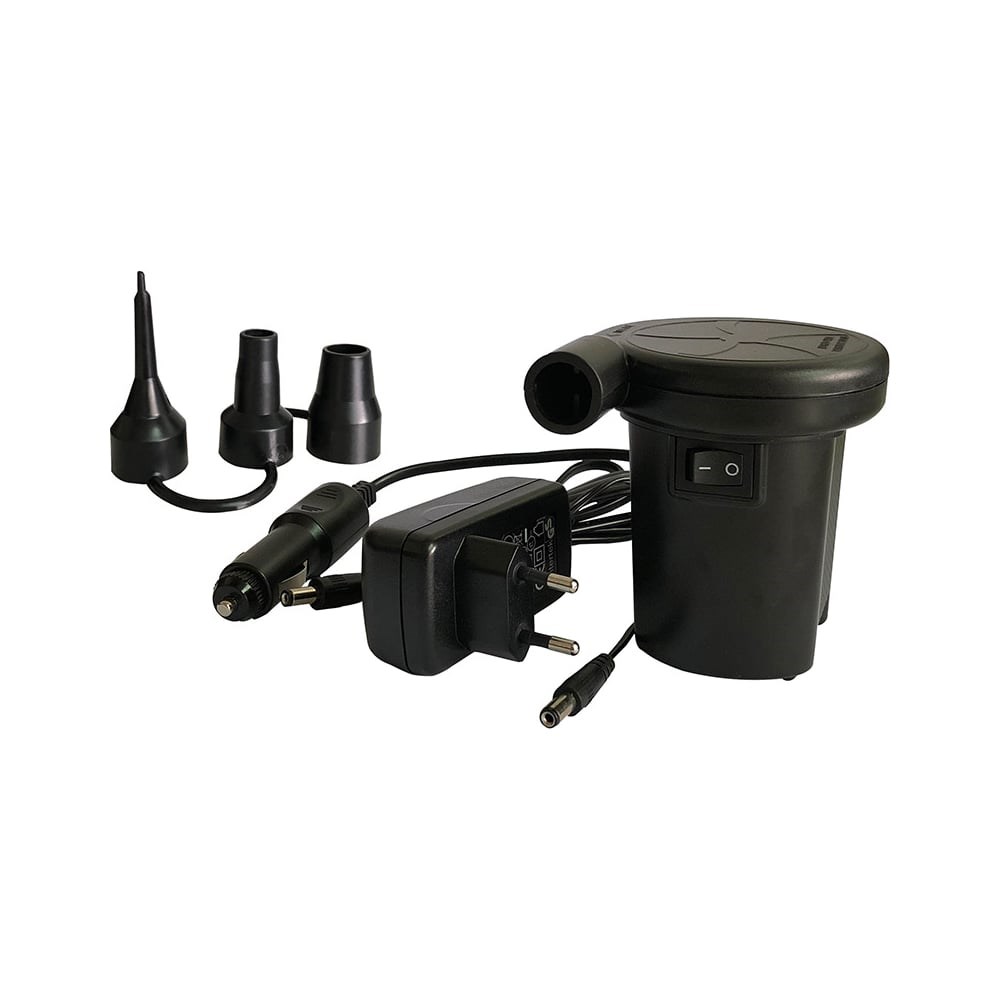Удобен для использования в помещении и на открытом воздухе Питание от розетки переменного тока или от прикуривателя Быстро сдувает и надувает 3 сопла для установки на основные стандартные клапаны Мощность 35 Вт. Класс защиты от поражения электрическим током II. Адаптер вход 220-240 В, 50/60 Гц, Макс 0.8А. Выход 12В, 2000 мАч