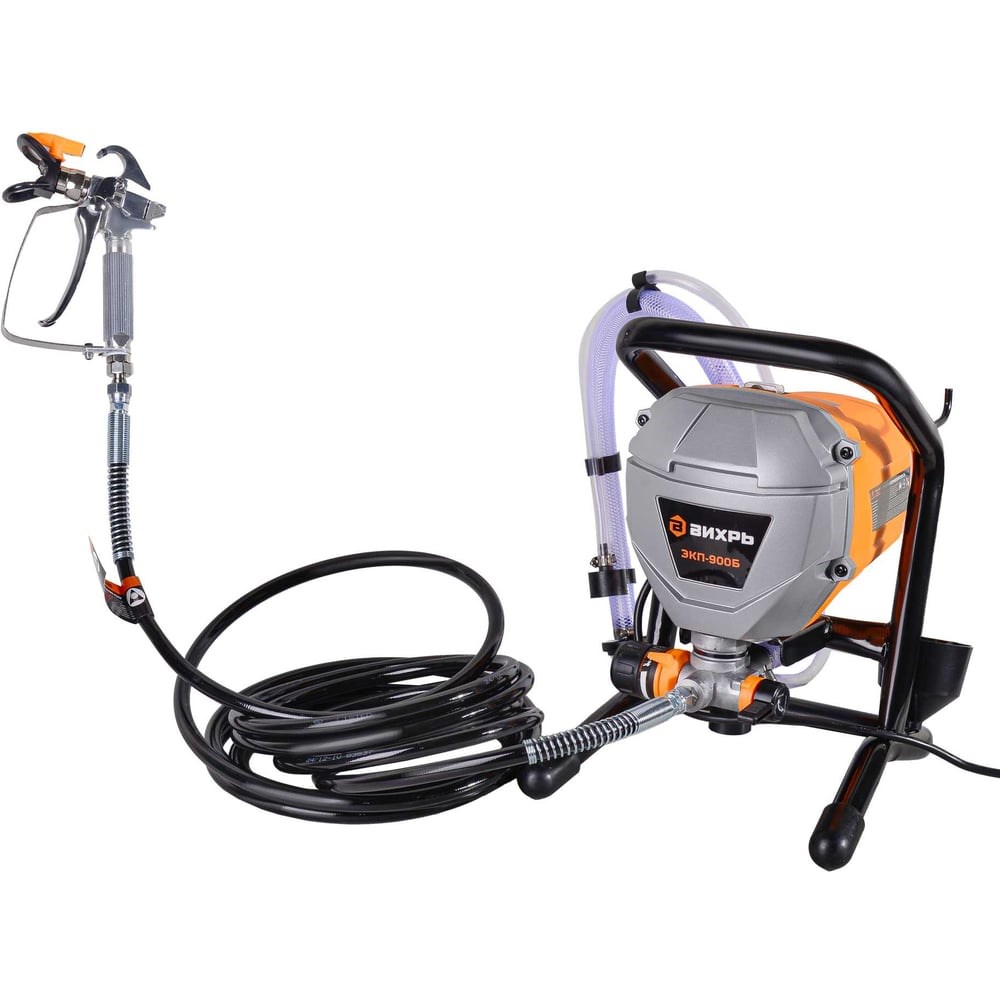 Безвоздушный окрасочный аппарат электрический ЭКП-900Б Вихрь предназначен для нанесения красок, лаков и других растворимых материалов соответствующей вязкости на различные поверхности.