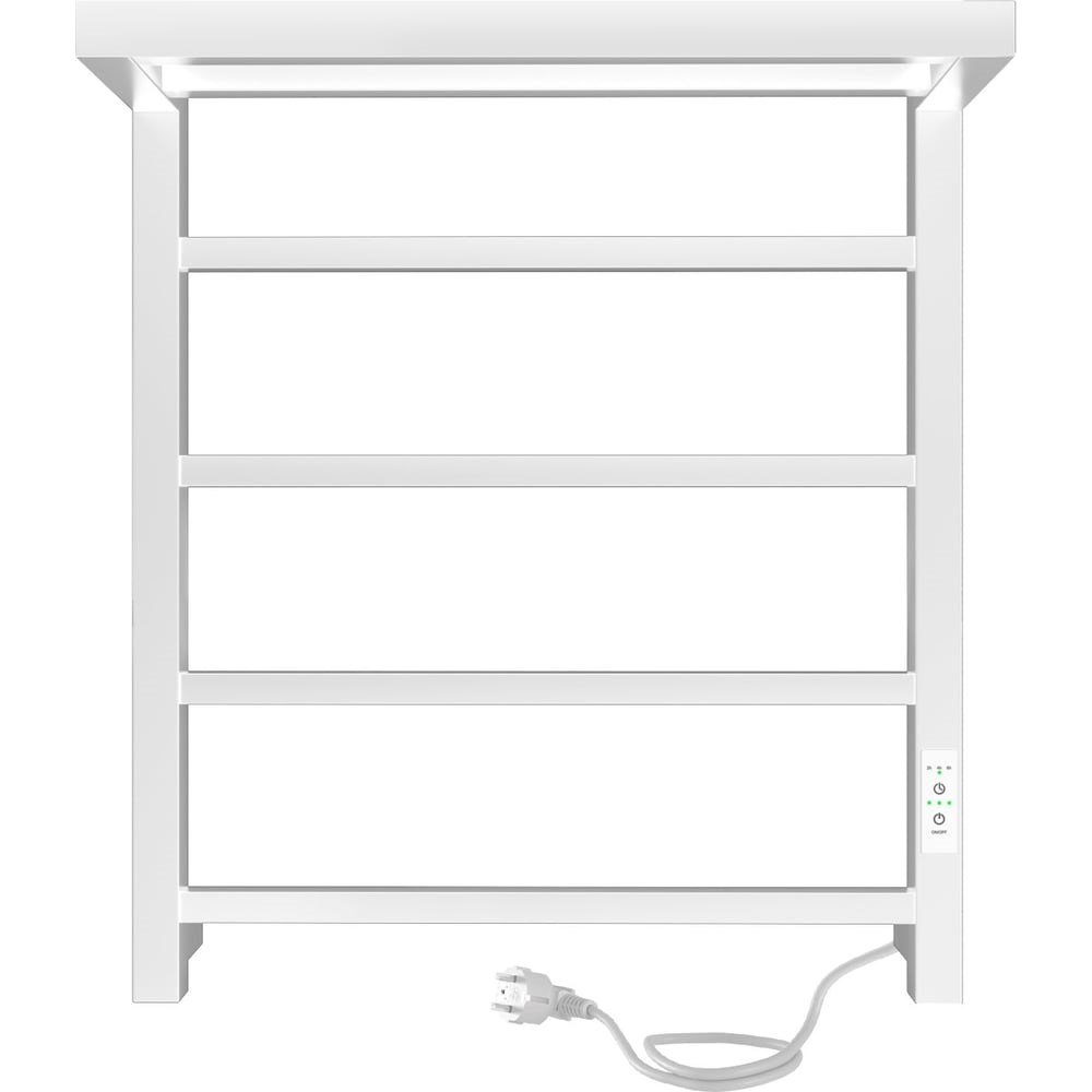 Компактный, красивый полотенцесушитель с терморегулятором в цвет полотенцесушителя. Преимуществом этой модели является дополнительная полочка для хранения полотенец. Благодаря полотенцесушителю вы избавитесь от повышенной влажности в ванной, которая способствует появлению плесени. Комфортная температура и теплые полотенца после душа будут радовать вас ежедневно. Модель имеет терморегулятор нагрева, у которого три режима: 40, 45, 50 градусов и таймер на отключение через 2, 4, 6 часов. Универсальность изделия предусматривает подключение через прямой провод или скрытое подключение без покупки дополнительного переходника. Длина прямого провода 1,1 метра. Полотенцесушитель относится к энергоэффективным изделиям, потребляемая мощность в данном размере 105 Вт. Специальная технология нагревательного кабеля защищает полотенцесушитель от перегрева, что влияет на длительные сроки службы. В комплектации идут 4 телескопических держателя, комплект монтажа и гарантийный паспорт.