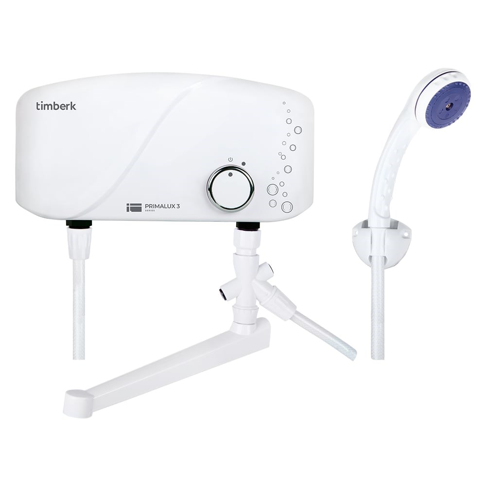 Электрический проточный водонагреватель Timberk WHEL-3 OSC комплектуется краном и комплектом для душа, состоящим из душевой насадки, шланга и настенного держателя для душа. Встроенный температурный контроллер препятствует закипанию воды и предотвращает перегрева нагревательного элемента. Благодаря небольшим габаритам корпуса можно устанавливать водонагреватель в ограниченном пространстве. Включение и выключение водонагревателя осуществляется автоматически при открытии или закрытии крана горячей воды. Прибор «безнапорный». Водонагреватель нельзя устанавливать в систему водоснабжения (врезать в трубу) по принципу напорного водонагревателя. Он не выдержит давление водопровода, если на выходе горячей воды будет перекрытие. На выходе горячей воды есть кран и душ, которые нельзя перекрывать. Вода в такой приборе проходит беспрепятственно с момента входа холодной воды и выхода горячей.