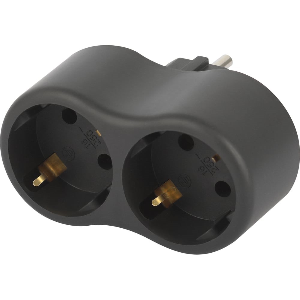 Электрический разветвитель ЭРА SPx-2e-B на 2 розетки, с заземлением, 16А, черный Б0059722